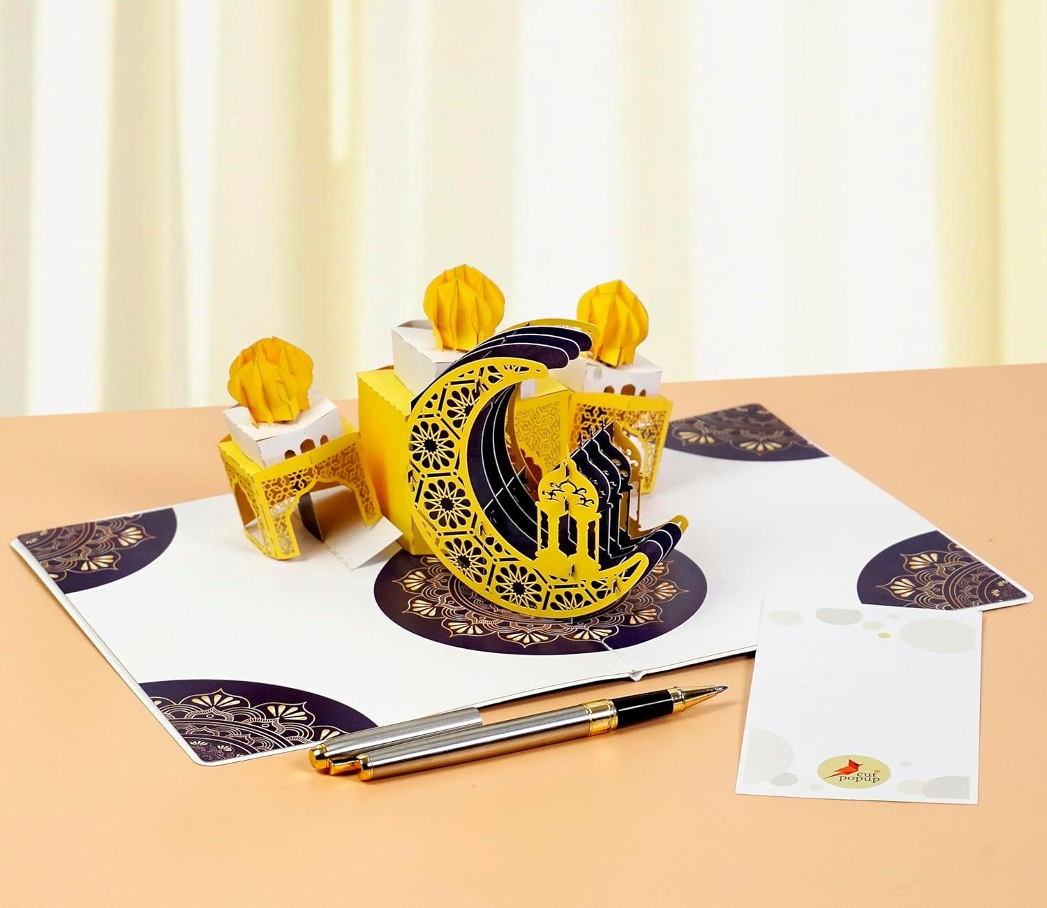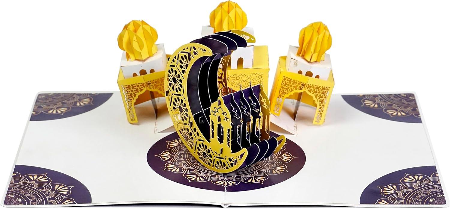 CUTPOPUP Ramadan Card Pop Up, 3D Ramadan Kareem, Eid Mubarak, Awesome Holy Month Present, Eid al-Fitr Celebration, Muslim Holiday, with Note and Envelope SD258US1520