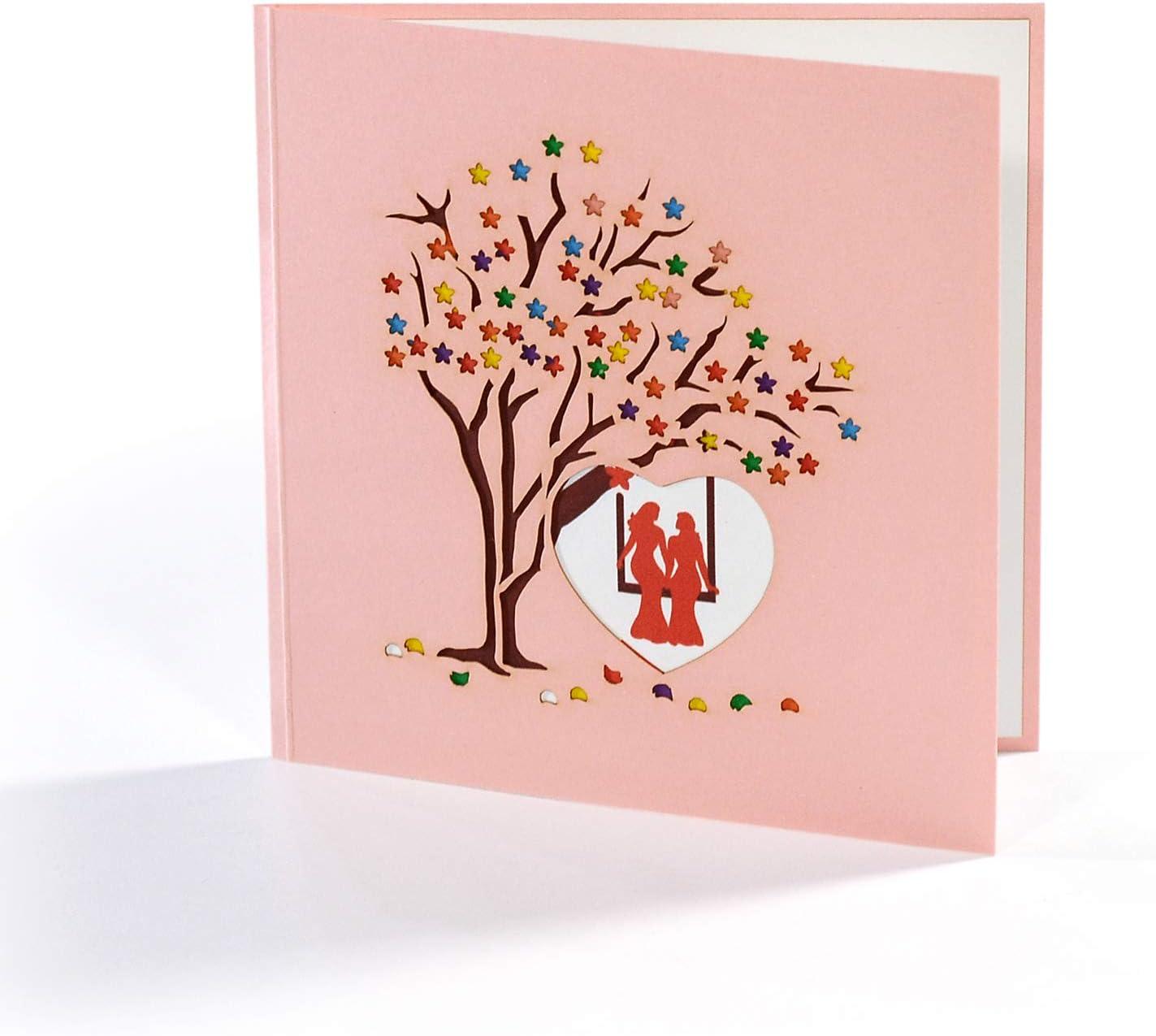 CUTPOPUP LGBT Lesbian Card Pop Up, 3D Birthday Day Anniversary Card (Lesbian Heart Tree)