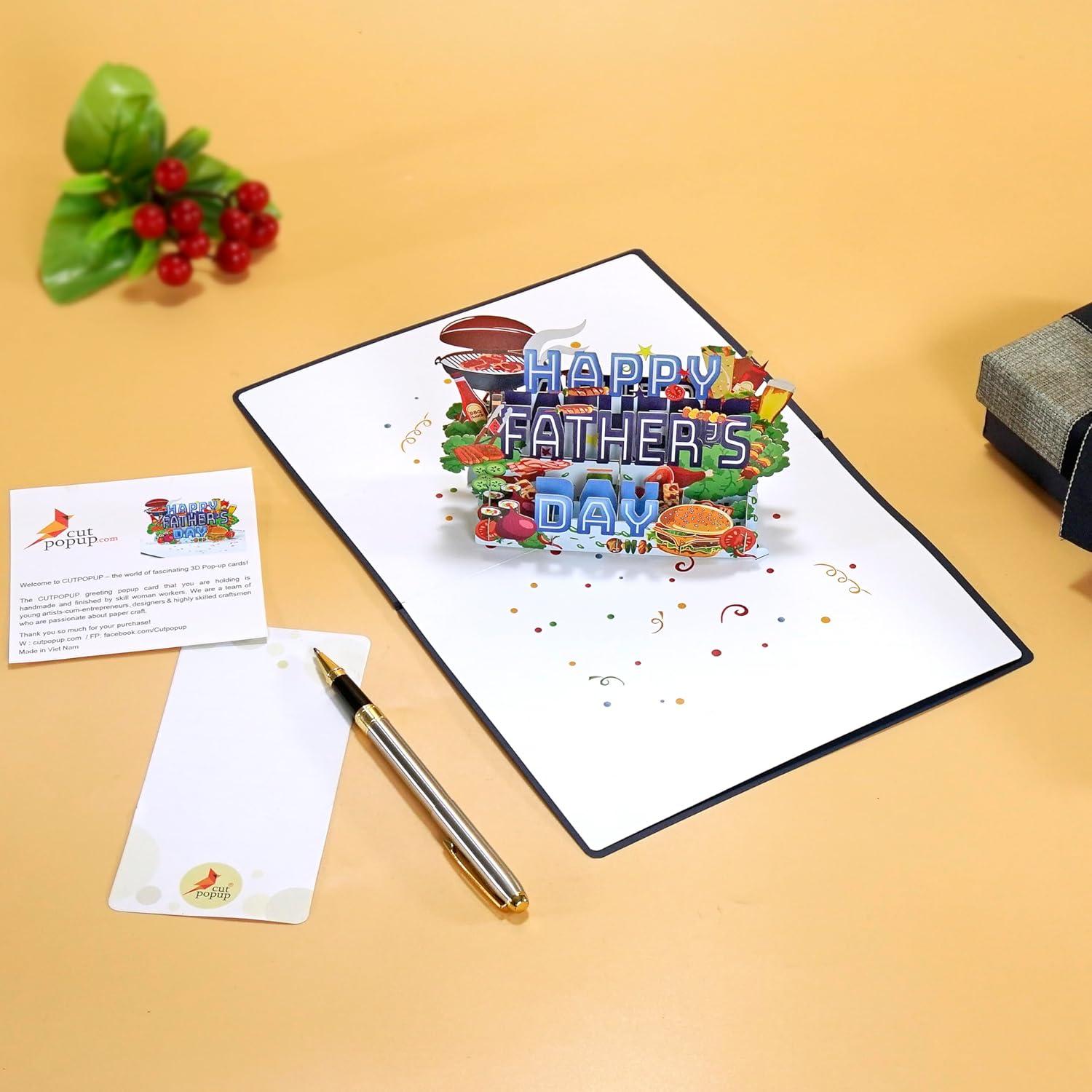 CUTPOPUP Daddy Hands, Fathers Day Card Pop Up, 3D Birthday Greeting, Father’s Day Card for Grandpa, Dad, Godfather, Husband, Son (Daddy Hands) SD241US1520(Happy Father’s Day BBQ-6x8in)