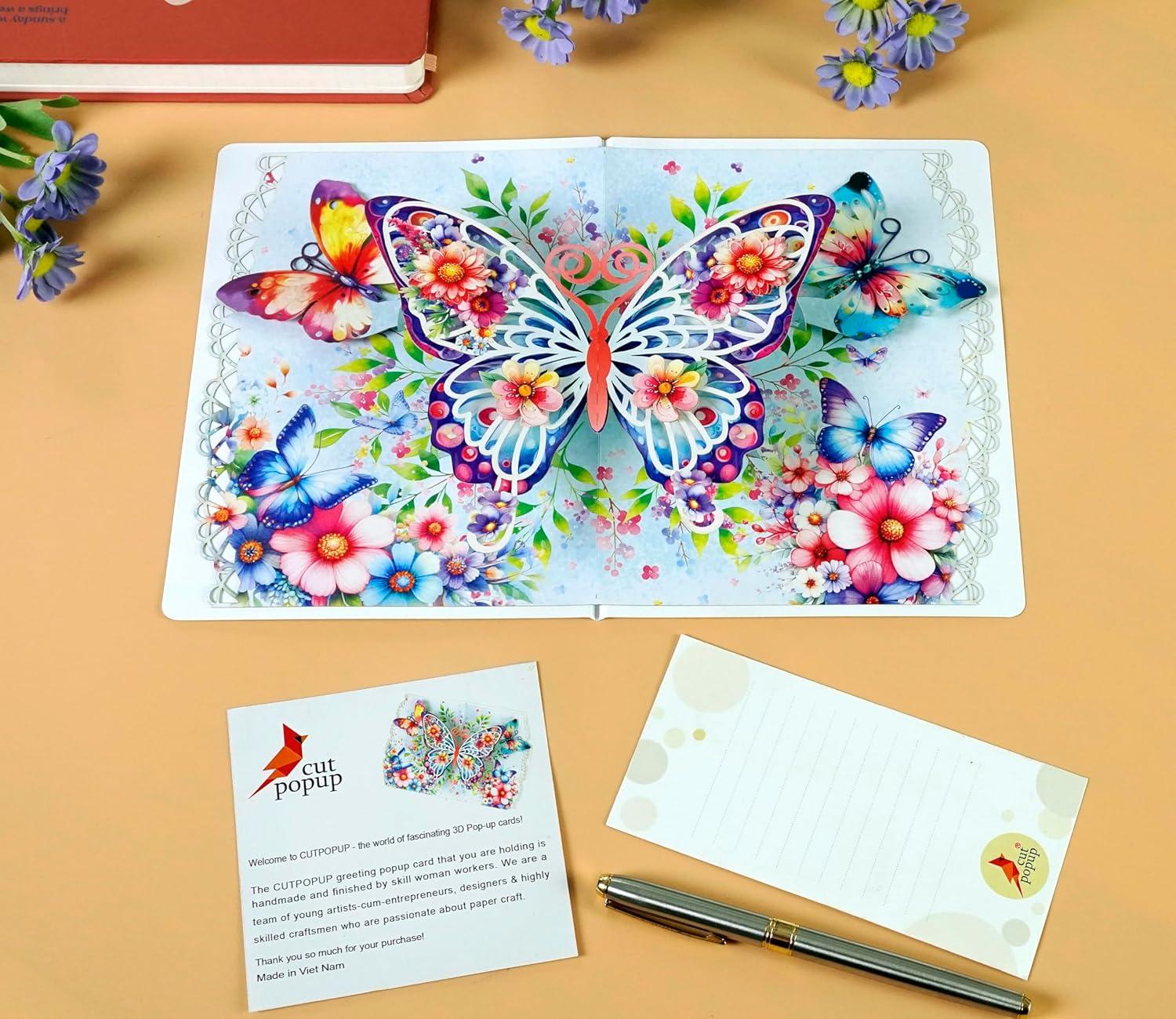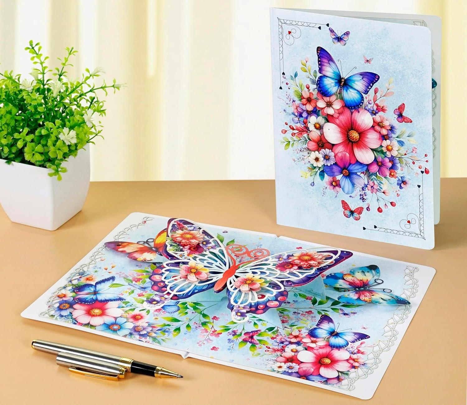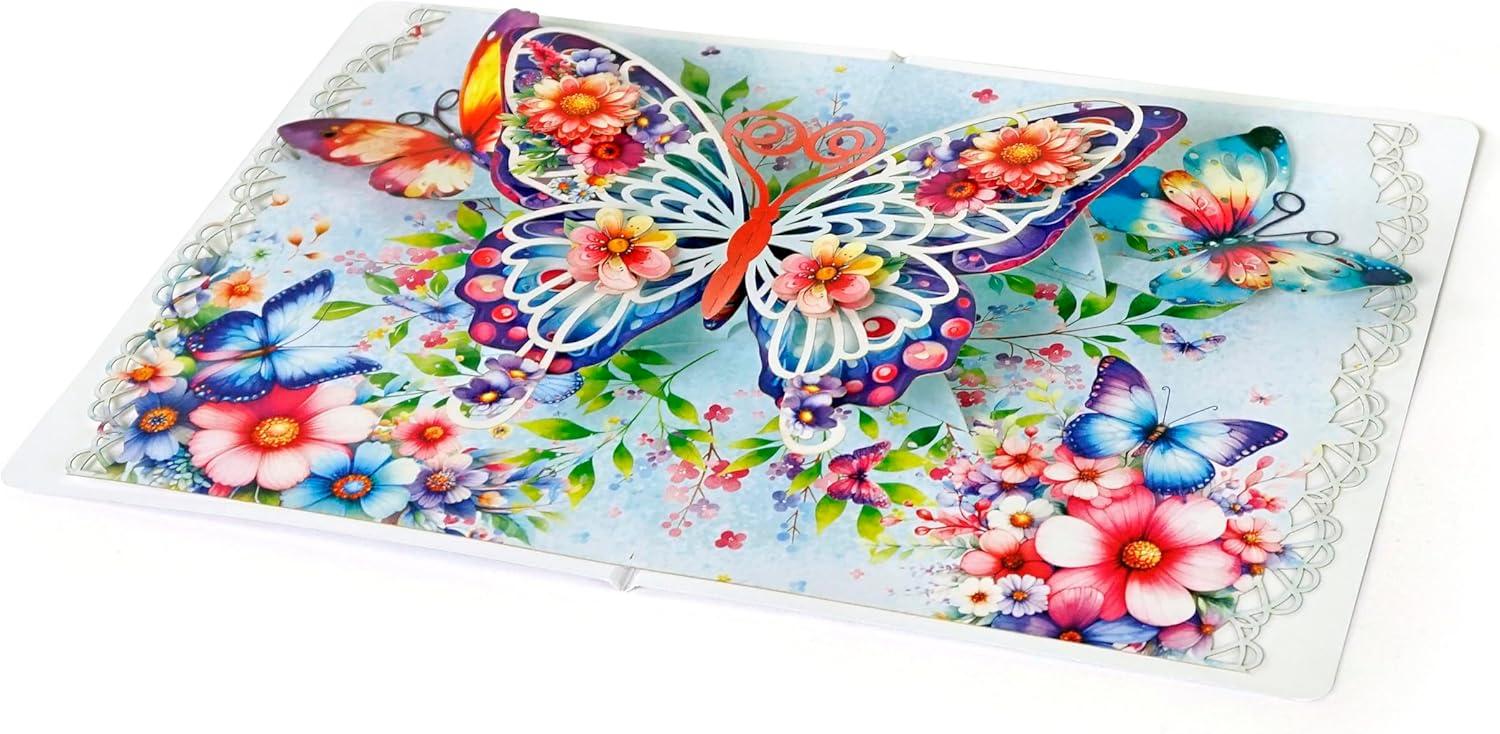 CUTPOPUP 40th Birthday Card Pop Up, Mother’s Day, 3D Greeting, Thank You Card (40th Sunflowers Bastket)(Butterfly-6x8in)