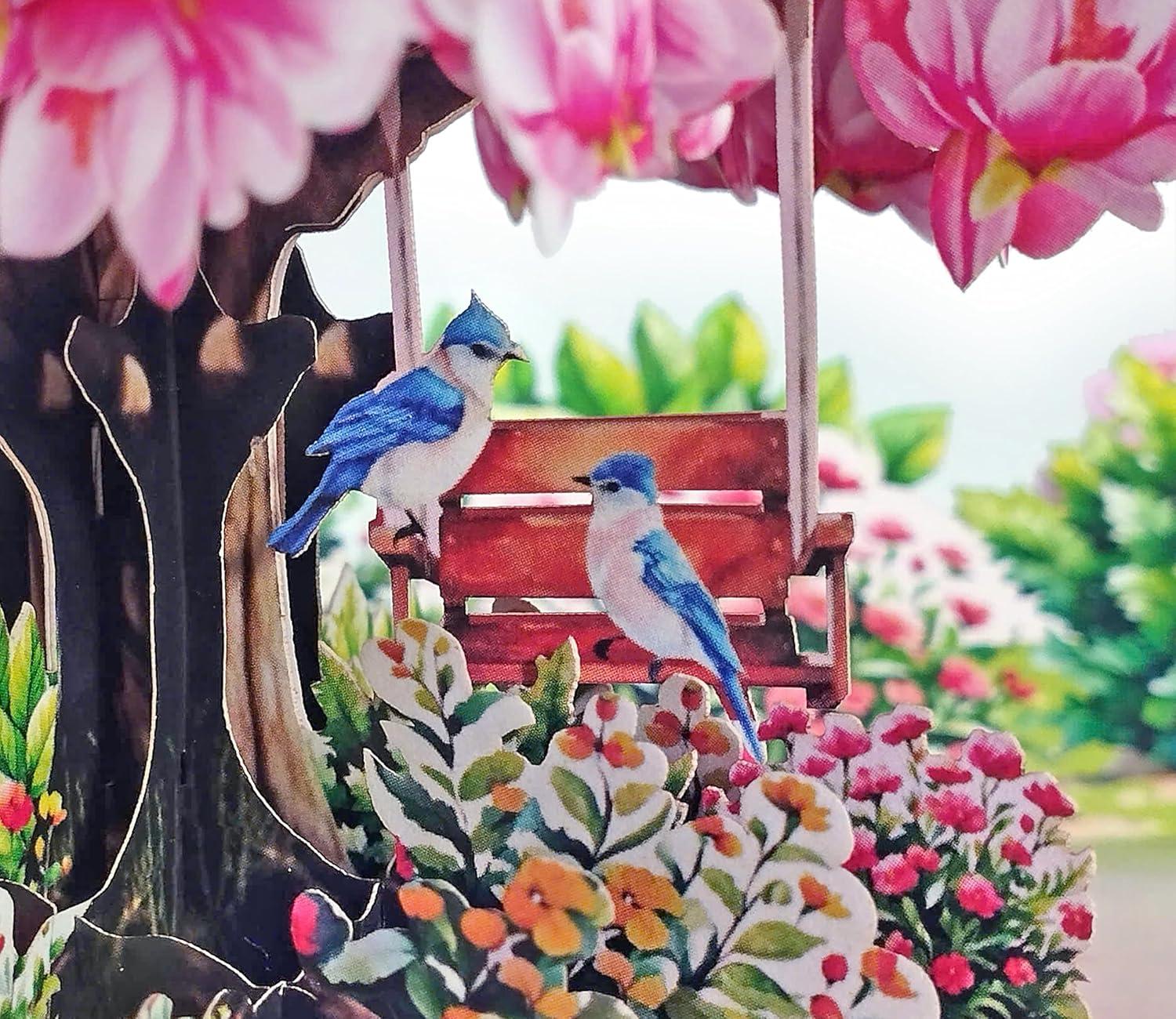 CUTPOPUP Anniversary Card Pop Up, Valentines Day Cards, Wedding, Engagement, 3D Greeting Card (Autumn Love Tree & Squirrel Couple)(Couple Finches)