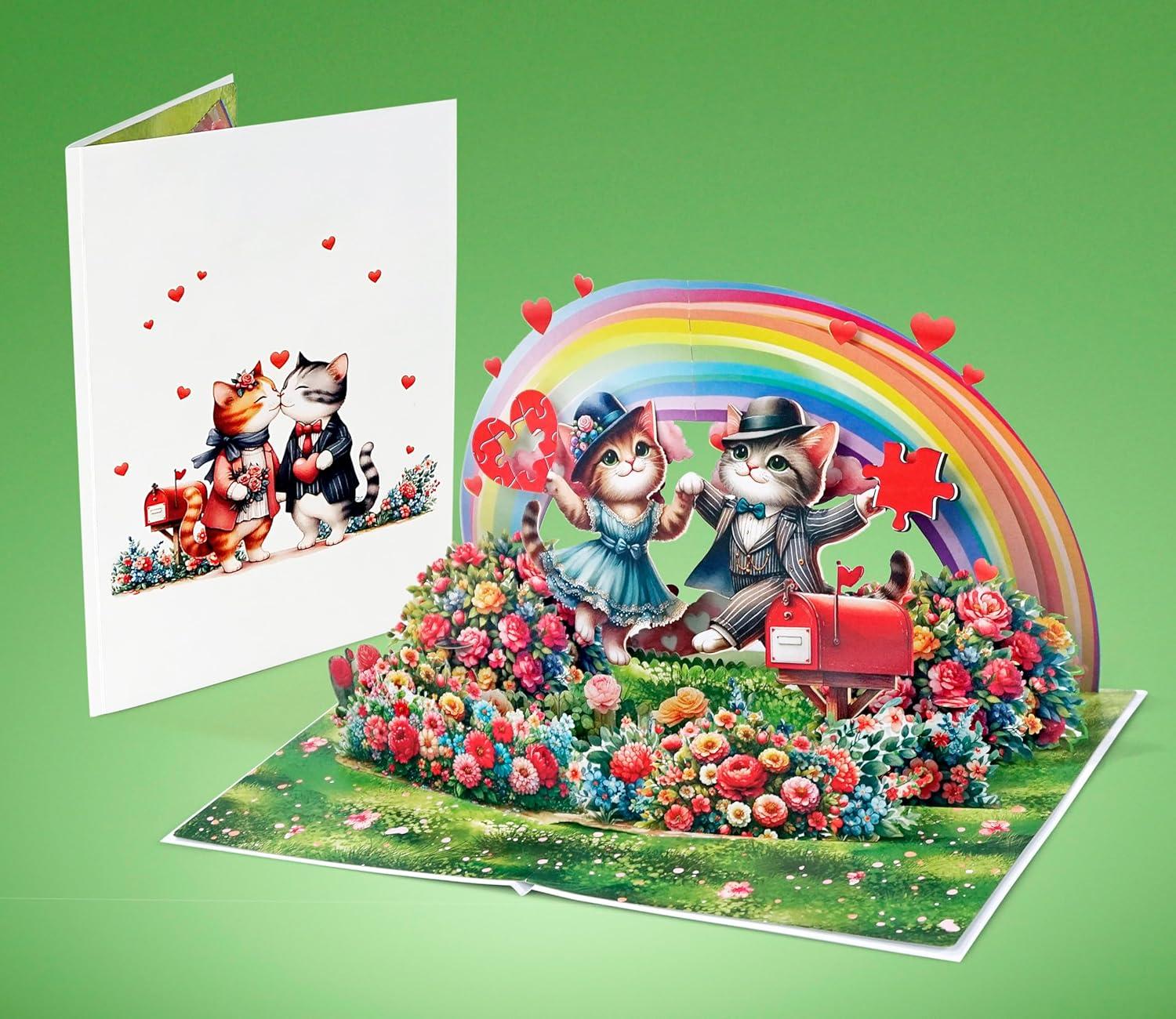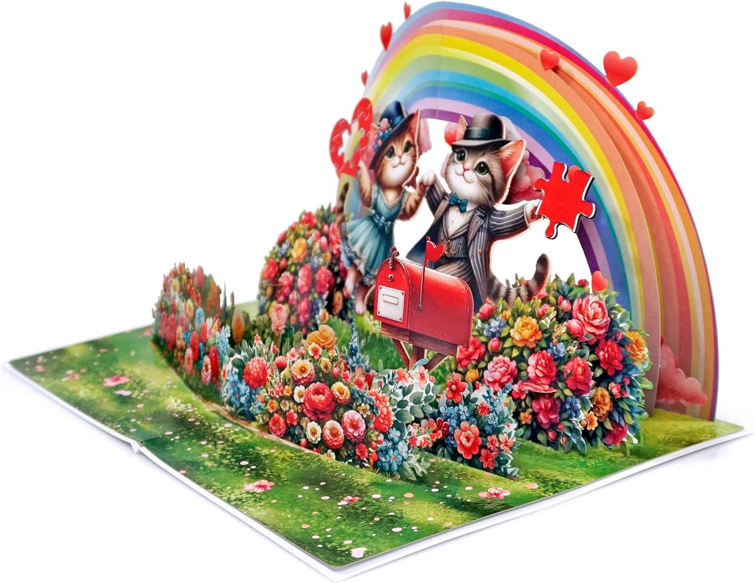 CUTPOPUP Anniversary Card Pop Up, Valentines Day, 3D Popup Greeting Love Card (Cat Couple)(Rainbow Cat Couple-6x8in)