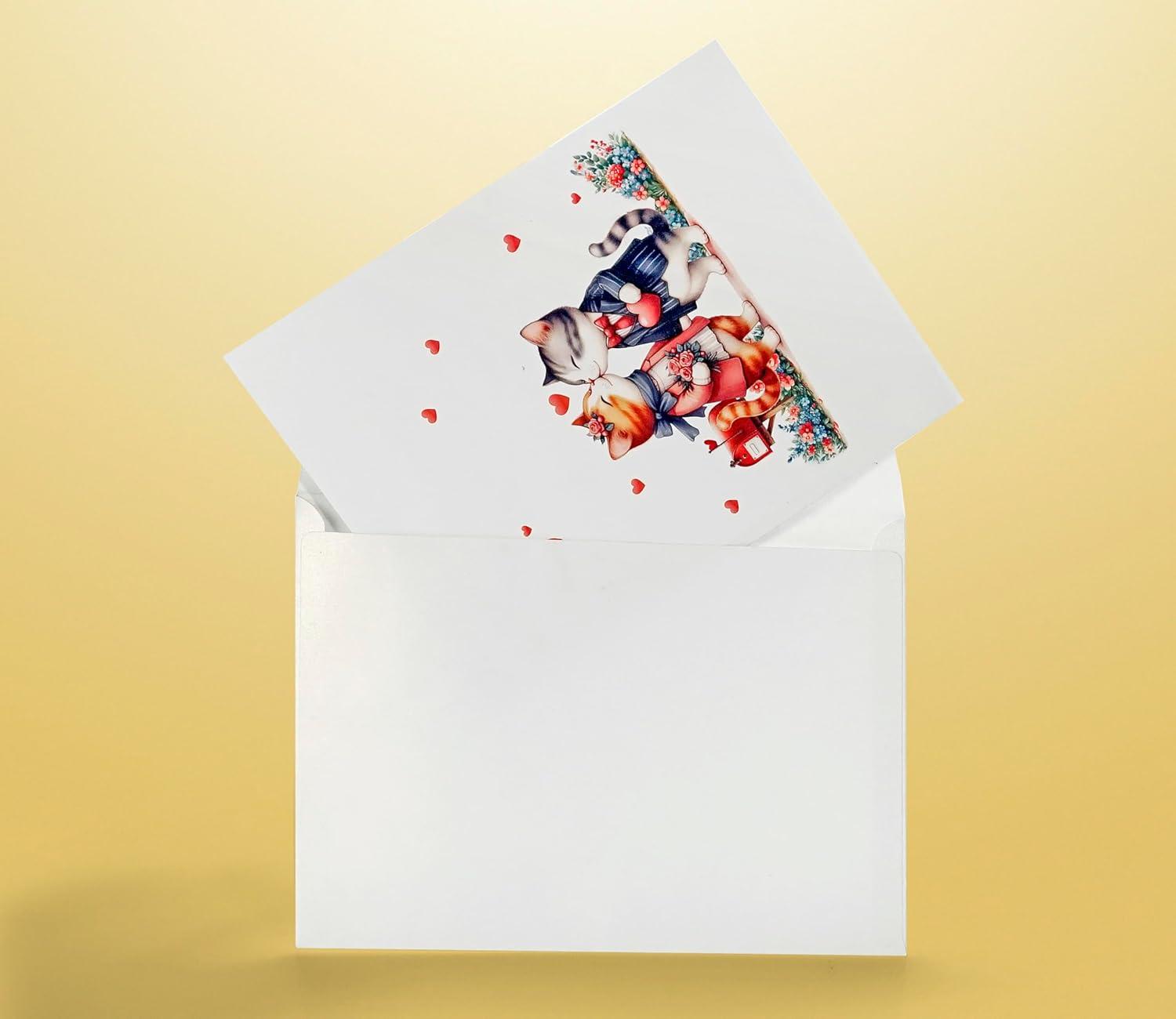 UNIQUE DESIGN: A pop-up card that, when opened, reveals an adorable cat couple snuggled together on a cozy sofa, lovingly holding a bright red heart between them.