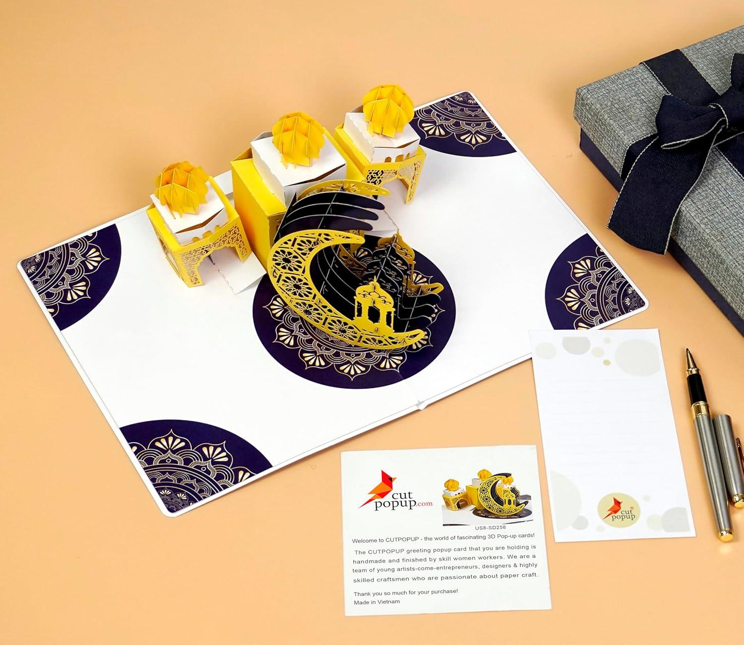 CUTPOPUP Ramadan Card Pop Up, 3D Ramadan Kareem, Eid Mubarak, Awesome Holy Month Present, Eid al-Fitr Celebration, Muslim Holiday, with Note and Envelope SD258US1520